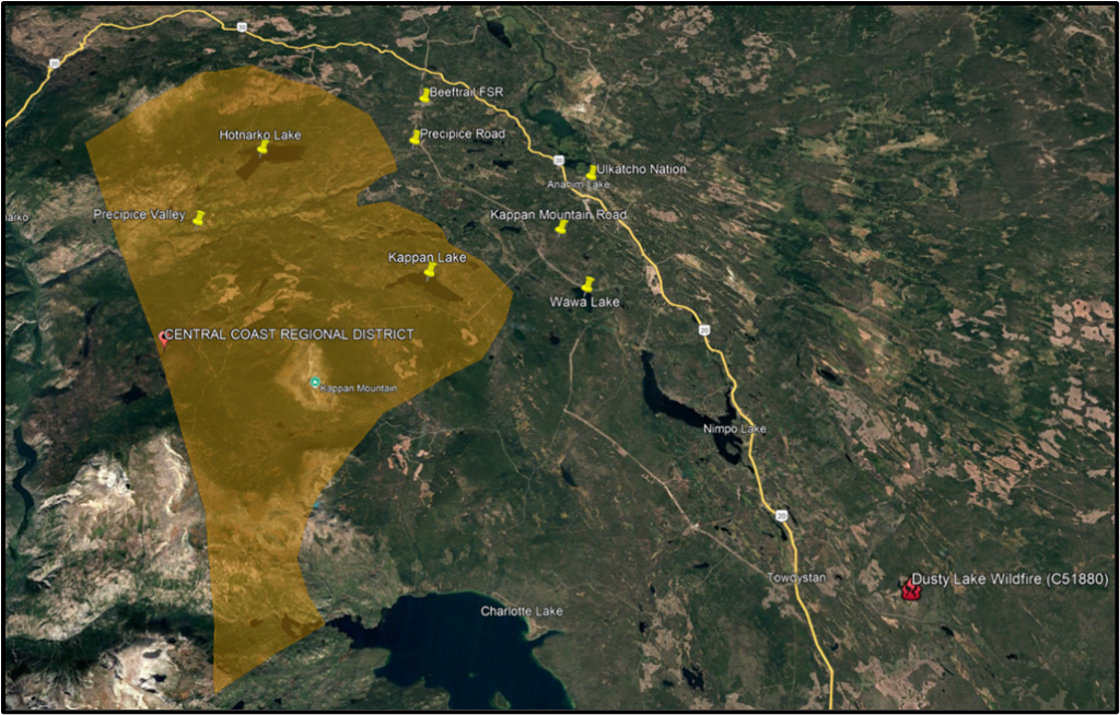 The Central Coast Regional District (CCRD) and Ulkatcho First Nation have rescinded an Evacuation Alert for the Precipice area due to wildfire. The threat to life and safety has passed.