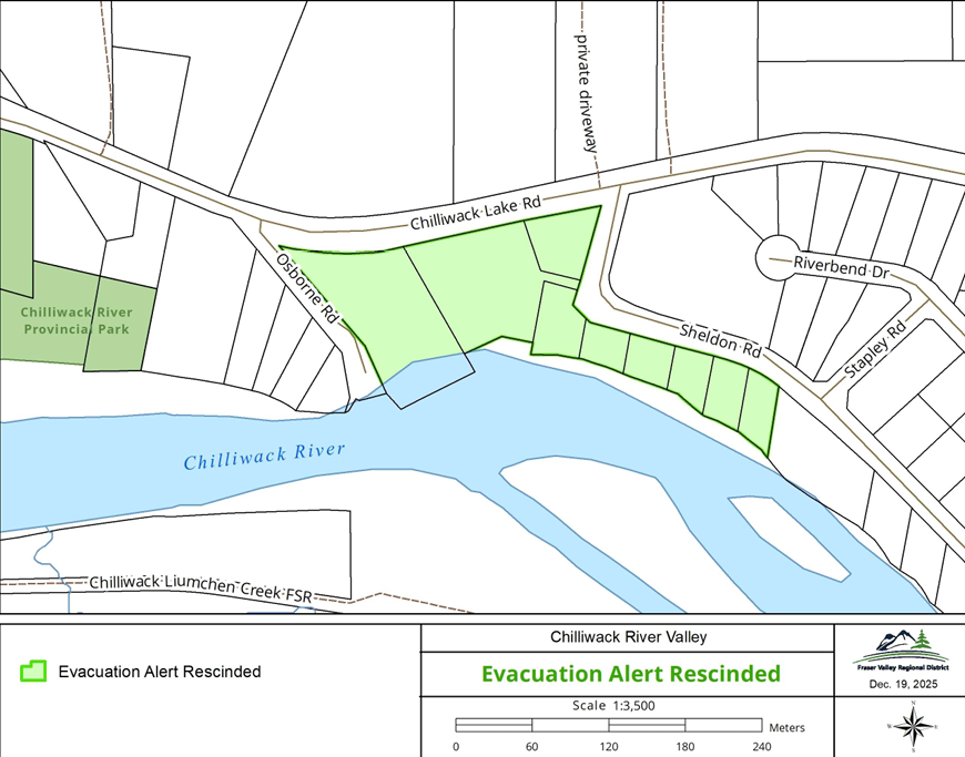 The Fraser Valley Regional District has RESCINDED the Evacuation Alert for 9 properties on Sheldon and Osborne roads in Electoral Area “E”