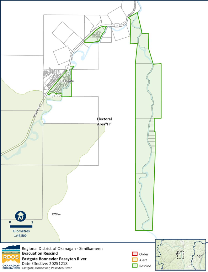 The Regional District of Okanagan-Similkameen has RESCINDED the Evacuation Alert for the Community of Eastgate