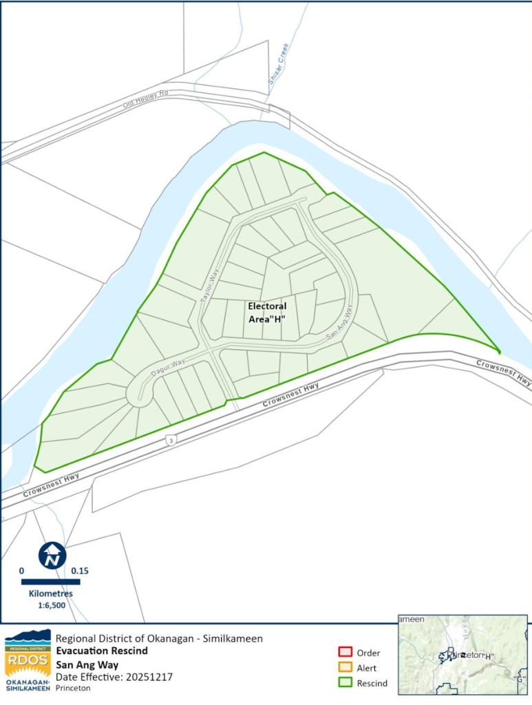 The Regional District of Okanagan-Similkameen has RESCINDED the Evacuation Alert for San Ang in Electoral Area “H” (Rural Princeton).