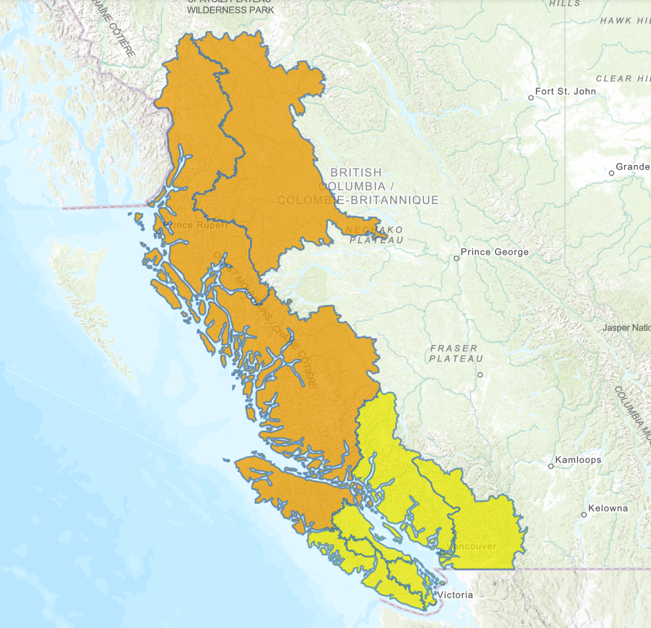 - North Coast including rivers and tributaries around New Aiyansh-Nass River, Prince Rupert, Kitimat and surrounding areas